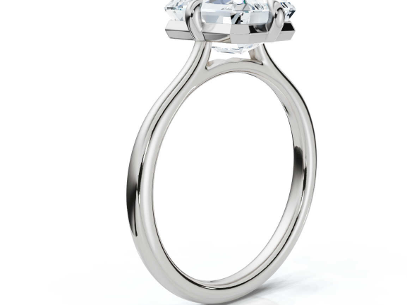 The Juno is a modern classic with a subtle edge. Featuring a sleek 2.2mm band and compass-set prongs, this solitaire offers a fresh take on timeless simplicity. Its low, stackable setting makes it effortless to pair with wedding bands, while the substantial gallery rail adds strength and security, keeping your diamond safe for a lifetime.