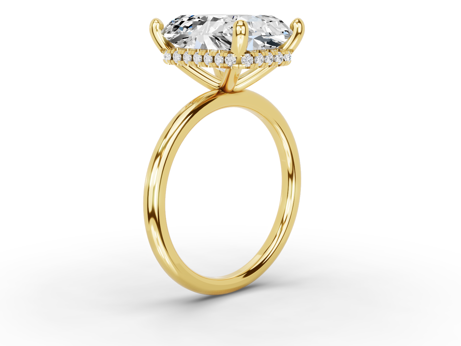 A solitaire with presence, The Margot features a dazzling radiant-cut center stone, set atop a sleek 2mm flat band for a contemporary yet timeless look. Its clean, structured silhouette offers a modern edge while remaining effortlessly wearable. Designed with versatility in mind, The Margot can be customized with or without a hidden halo, allowing for an extra touch of sparkle or a more minimalist finish.