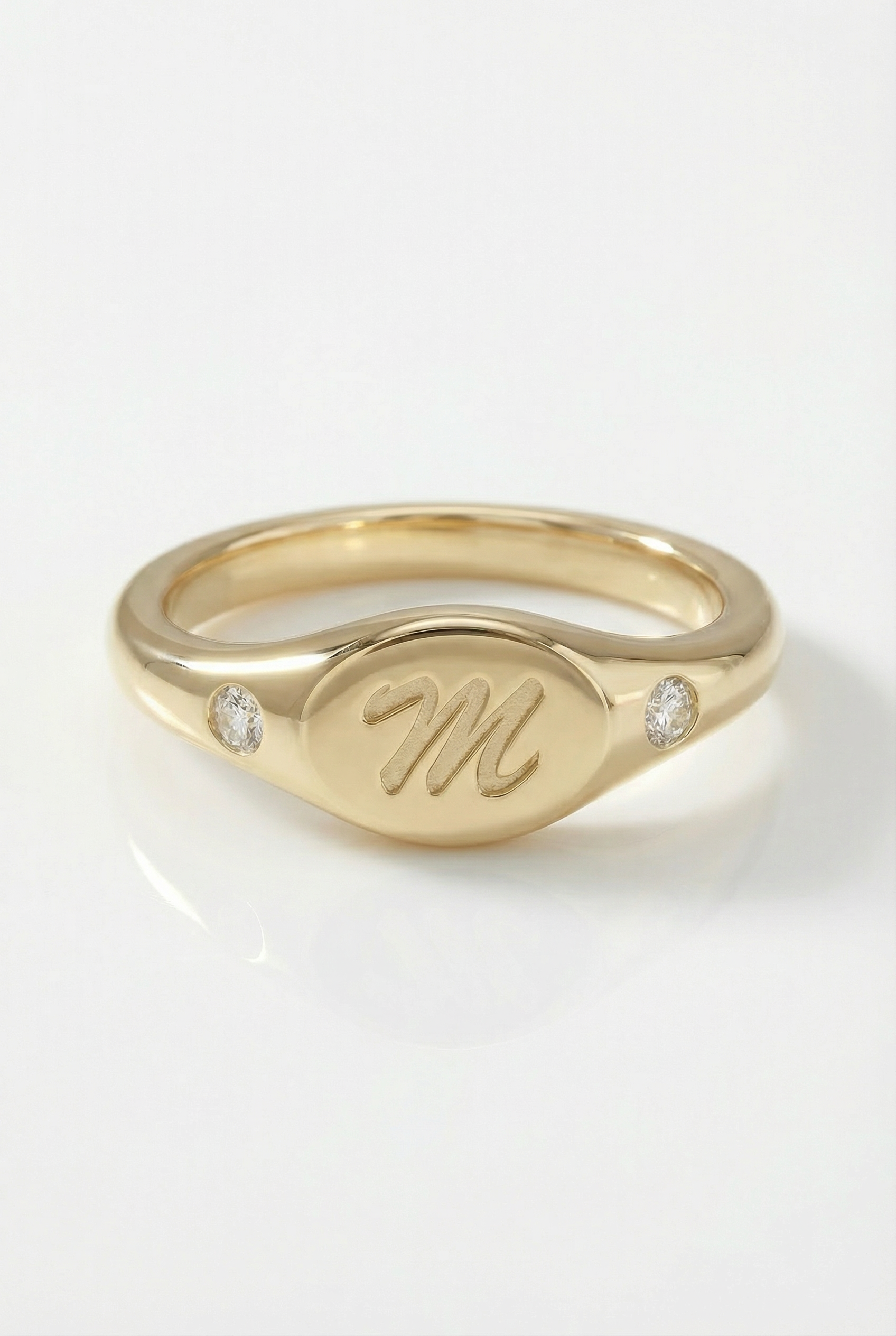 This gorgeous pinky ring is one of our most requested items! It can be worn on any finger, is made of solid gold and lab grown diamonds, and is absolutely classic. In the order notes, please include the letter you are wanting to be engraved!