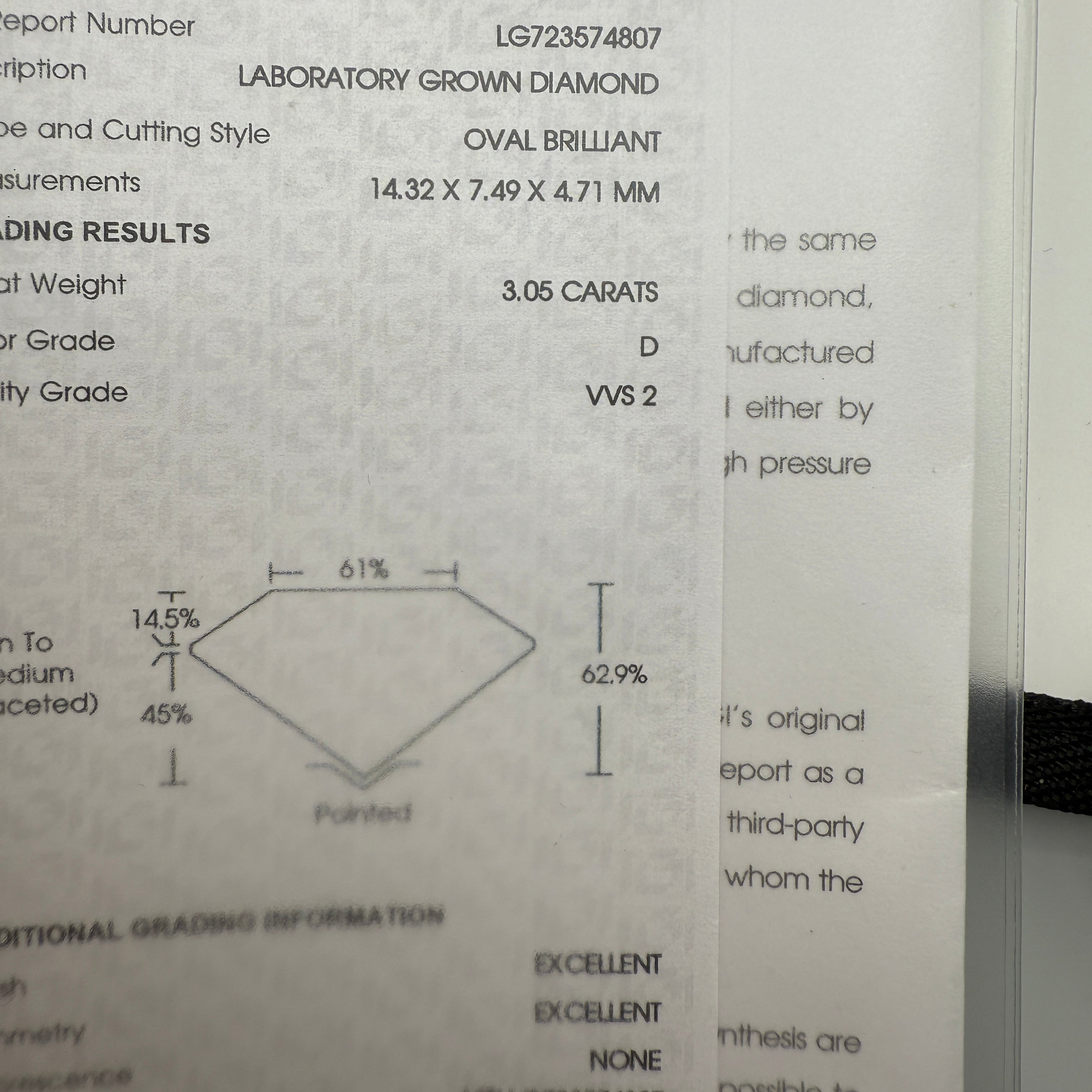 3.06ct D/VVS2 Moval Lab Grown Diamond