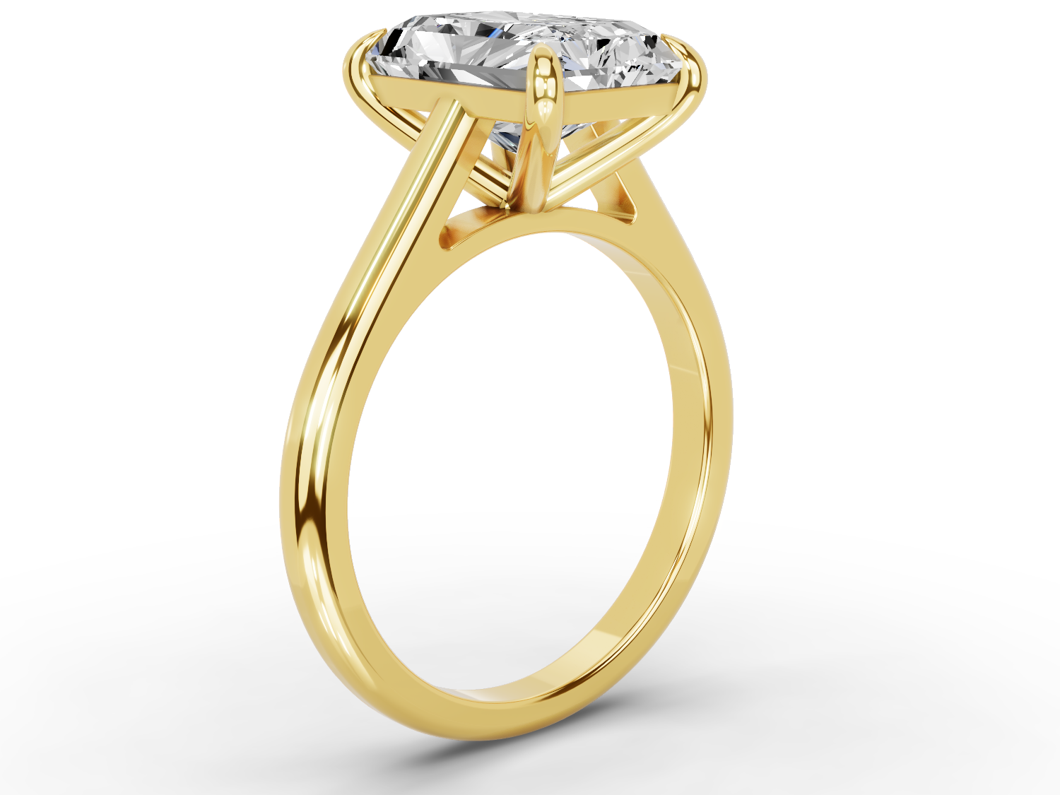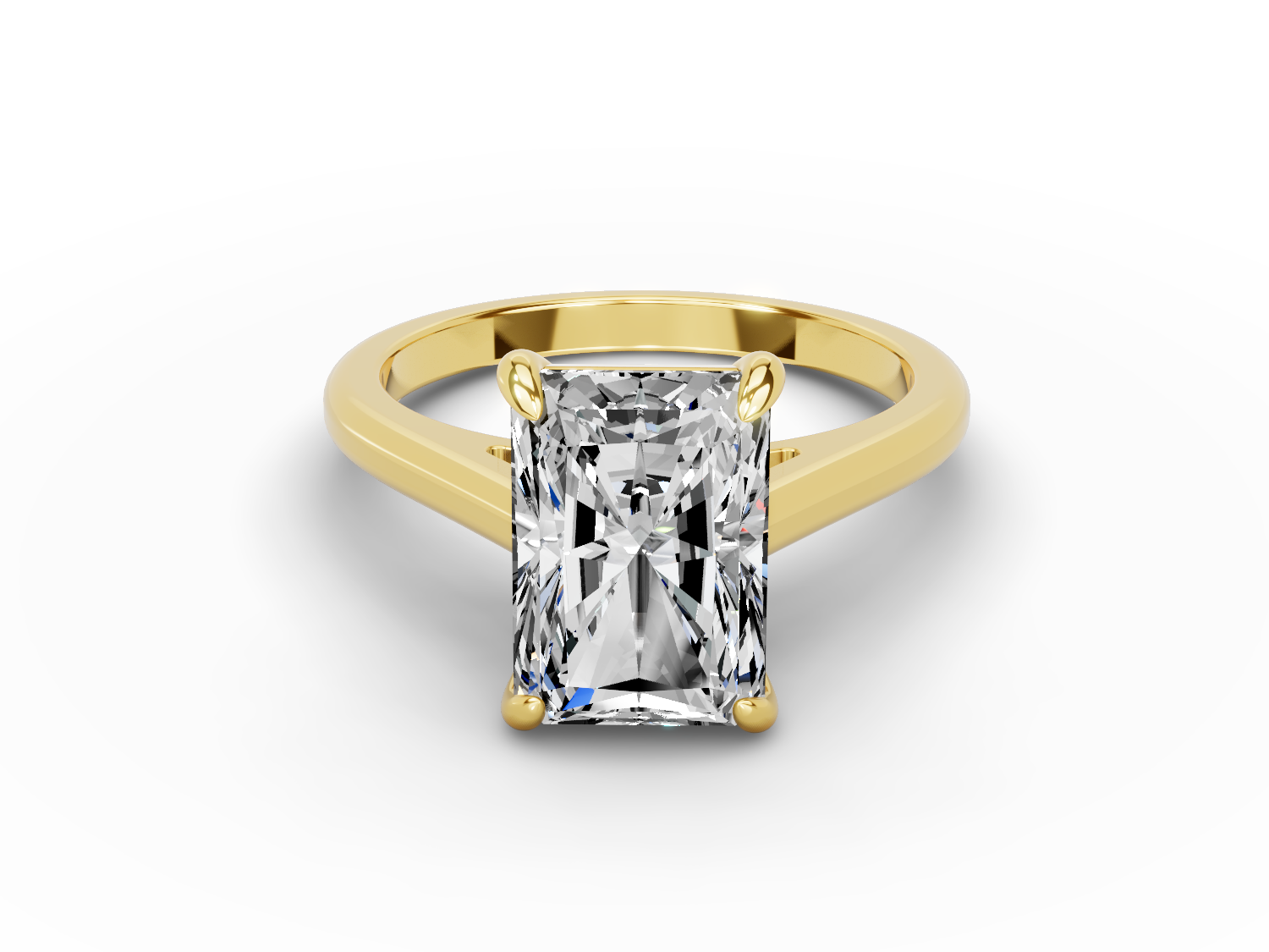Timeless yet effortlessly modern, The Claire showcases a dazzling radiant-cut center stone, set in a refined 2mm cathedral band for an elevated, graceful look. Its high-profile setting allows for seamless stacking, while the plain gallery rail keeps the design sleek and sophisticated. Crafted for both elegance and durability, The Claire is built to last a lifetime—because true love is forever.